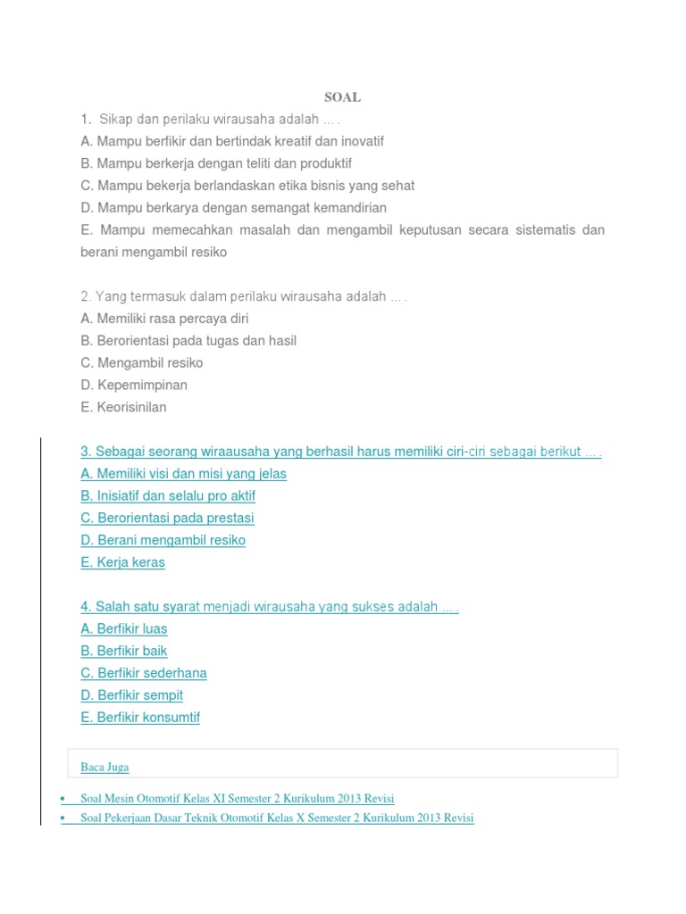 Soal Mata Pelajaran Bisnis Online Kelas Xii Smk from imgv2-2-f.scribdassets.com Soal bisnis online kelas xi/xii smk kurikulum 2013. Dalam postingan ini, bimbel brilian mempublikasikan latihan soal ulangan tengah semester berbentuk online. Uji kompetensi bab 1 bisnis ritel 1 seluruh aktivitas yang. Soal pemasaran online kelas 11 lengkap beserta kunci jawabannya july 23 2019 may 23 2020 by perpuskampus 169 views jangan lupa membaca artikel tentang bisnis di informasi bisnis terbaik 2020. Contoh soal pemasaran kelas 12 semester 1 kurikulum 2013 lengkap. Soal dan jawaban bisnis online kelas 12. Oiya aktivitas prakarya tersebut juga bisa menyeimbangkan otak kanan serta otak kiri. Soal uts kwu pilihan ganda kunci jawaban kelas xii soal uts 1 kewirausahaan kelas.